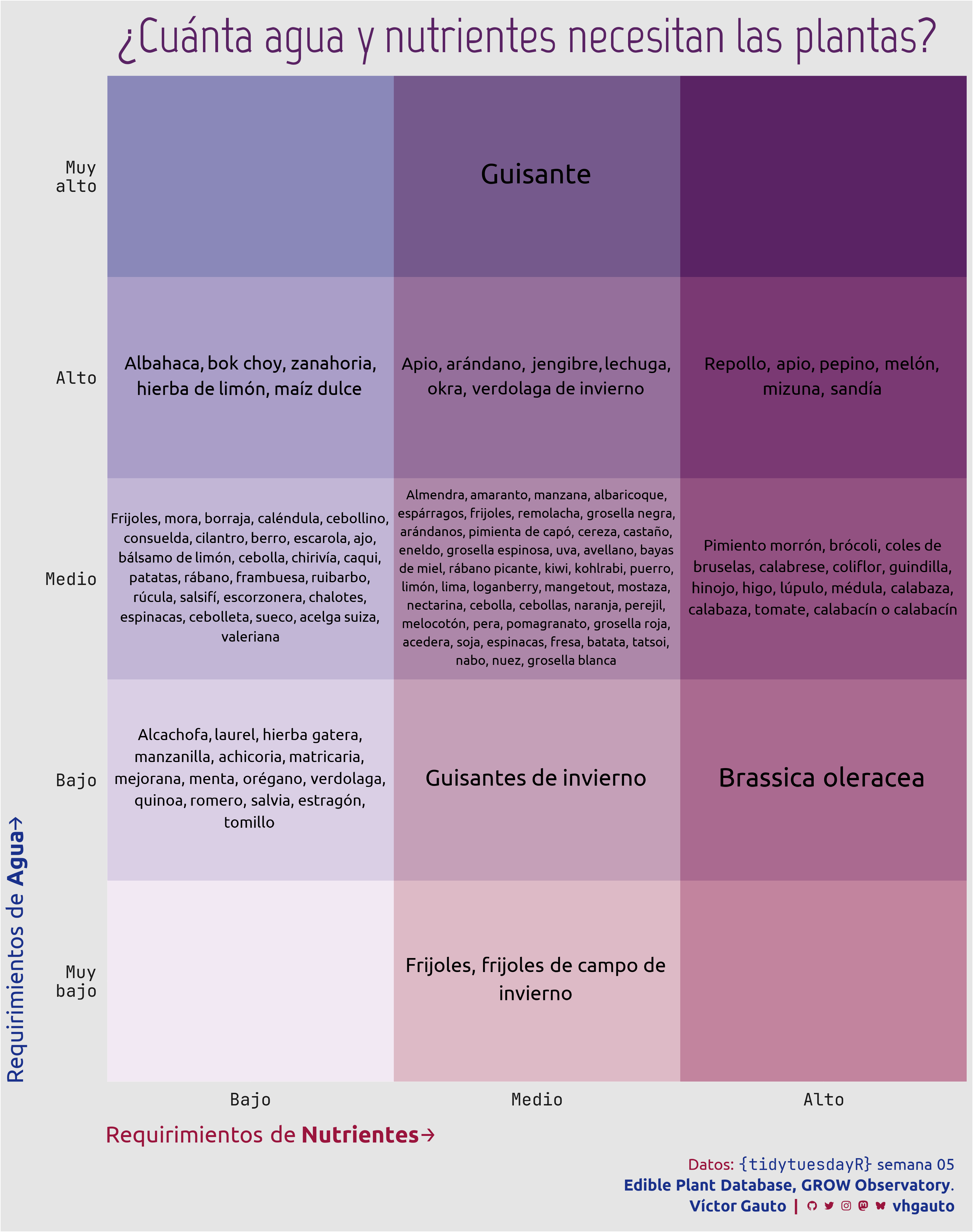 Creo un tibble con todas las combinaciones de agua y nutrientes. Agrego traducciones y combino con los nombres de las plantas.